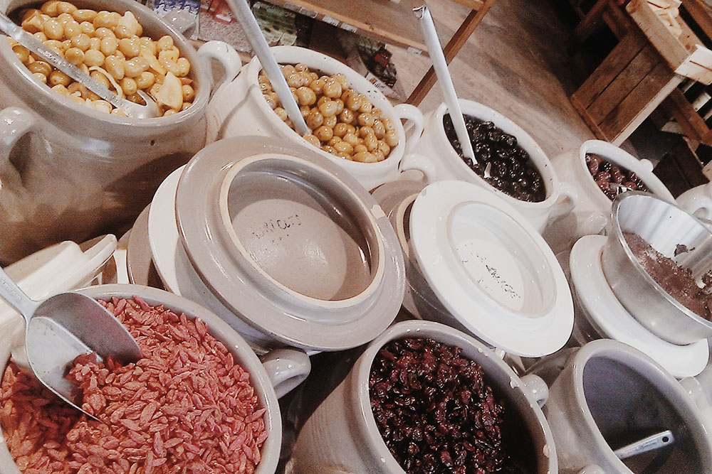 J’ai donc adopté pour de bon cette alimentation, qui nécessitait seulement de faire les courses au marché et dans les rayons vrac des magasins bio en complément. Ma cuisine a complètement changé elle aussi : que des jolis bocaux sur les étagères, un frigo rempli seulement de fruits et légumes colorés, de délicieuses recettes improvisées en fonction de ce que je trouvais dans le frigo, dans mes bocaux et boîtes à épices.