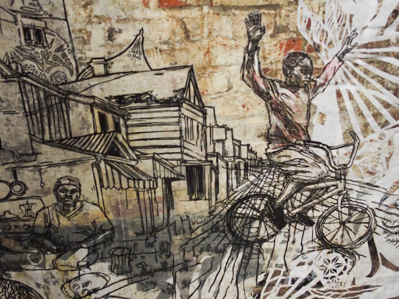 Le musée cherche à institutionnaliser le « street art« , dans une représentation de notre société contemporaine de consommation. J’ai personnellement préféré les expositions temporaires (donc allez vite les découvrir!), avec un coup de cœur pour le travail de l’artiste Soon, situé dans … la cave du musée ! Espèce peu commun pour des œuvres tout aussi particulières, faites en papier déchiqueté, avec un résultat détaillé et très réussi.