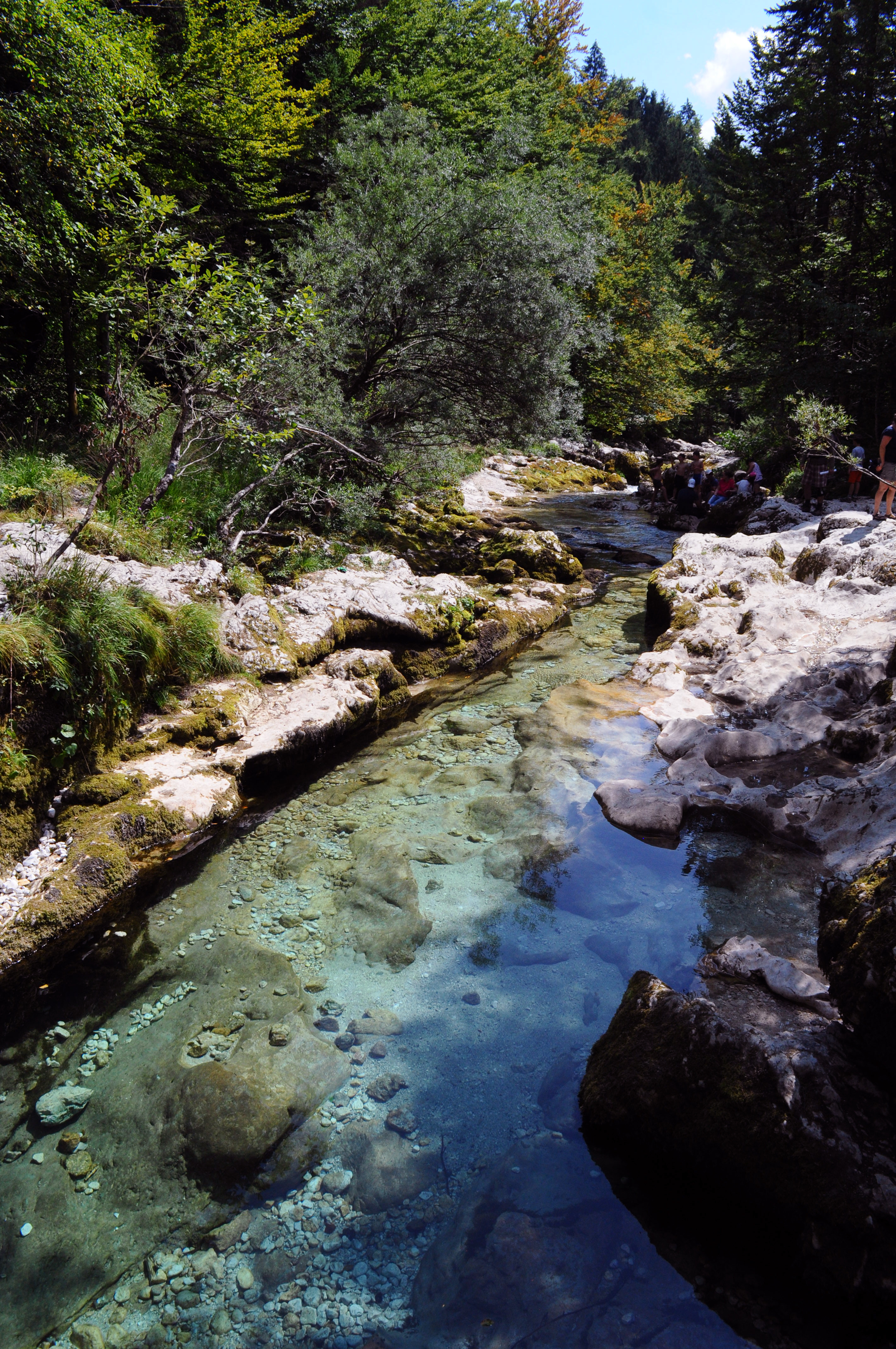 Étant donné que je suis arrivée par la Sud, j’ai fait un premier arrêt à Most na Soči (prononcer Most na Sotchi), une petite ville aux portes de la vallée de la Soča (Sotcha). Je suis restée 2 nuits dans une auberge au bord du lac, où j’ai piqué une tête le matin – seule au monde en plein mois d’Août.