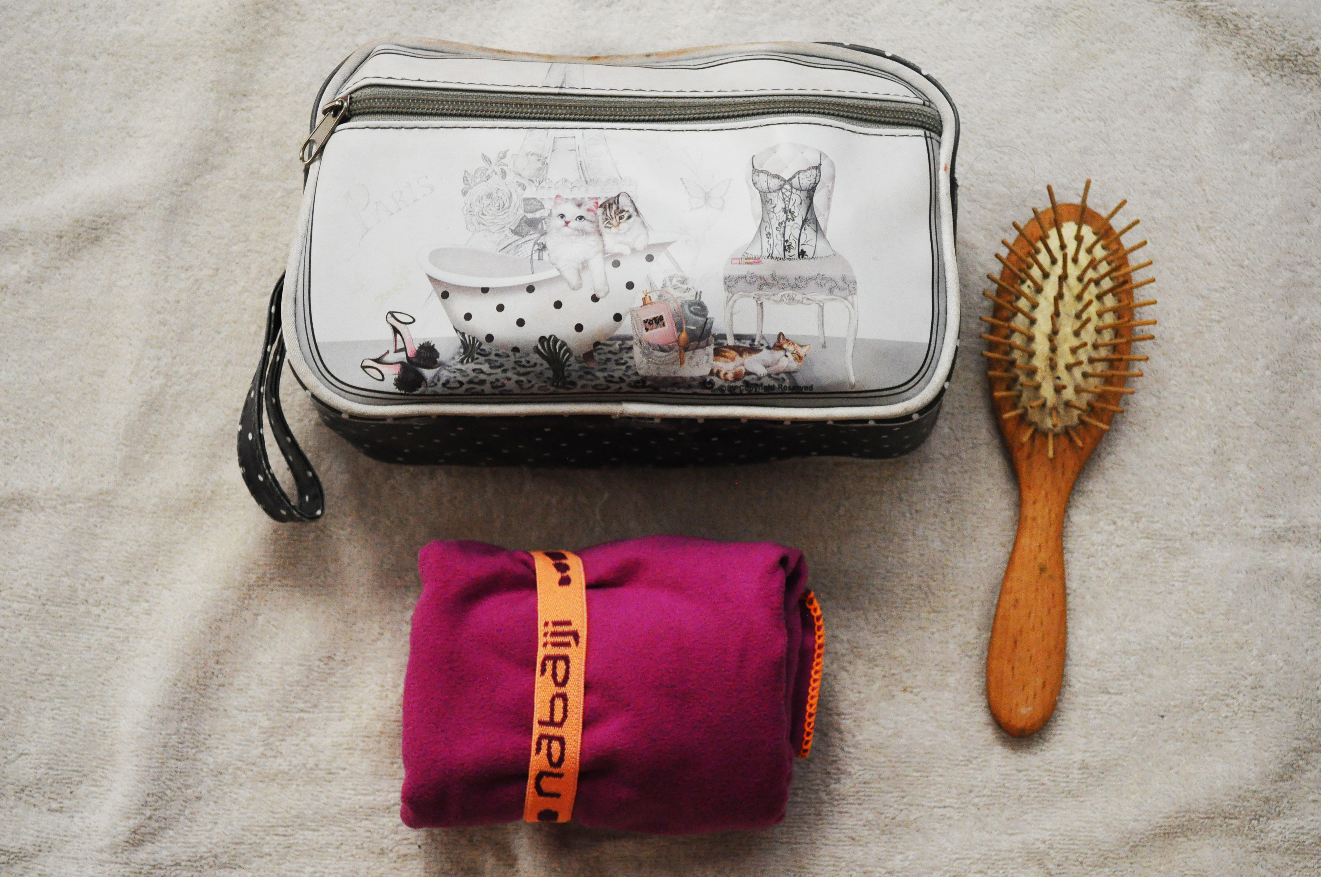 Je vais devoir m’inspirer de ta façon de faire car je suis actuellement en voyage et dans mon sac, j’ai des vêtements, une petite trousse de secours, 2 cadeaux pour les familles qui m’accueillent, mon chargeur de téléphone, 1 casquette, 1 petite serviette, 1 écharpe et 1 brosse à dent ^^