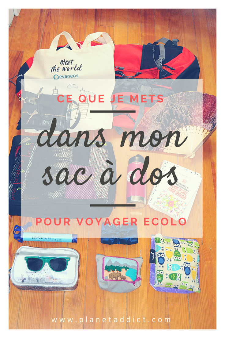 Donc en dehors des choix de transports, d’hébergements et d’activités (dont je vous parlerai), voyager responsable implique aussi de bien s’équiper, d’avoir du matériel voyage adapté pour adopter (ou continuer) de bonnes habitudes écolo en voyage.