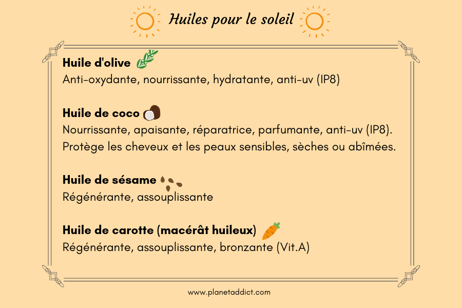 Merci pour toutes ces supers recettes, je pense que ça va bien me servir pour cet été. Je cherchais justement à éviter les crèmes solaires vendues dans les commerces.