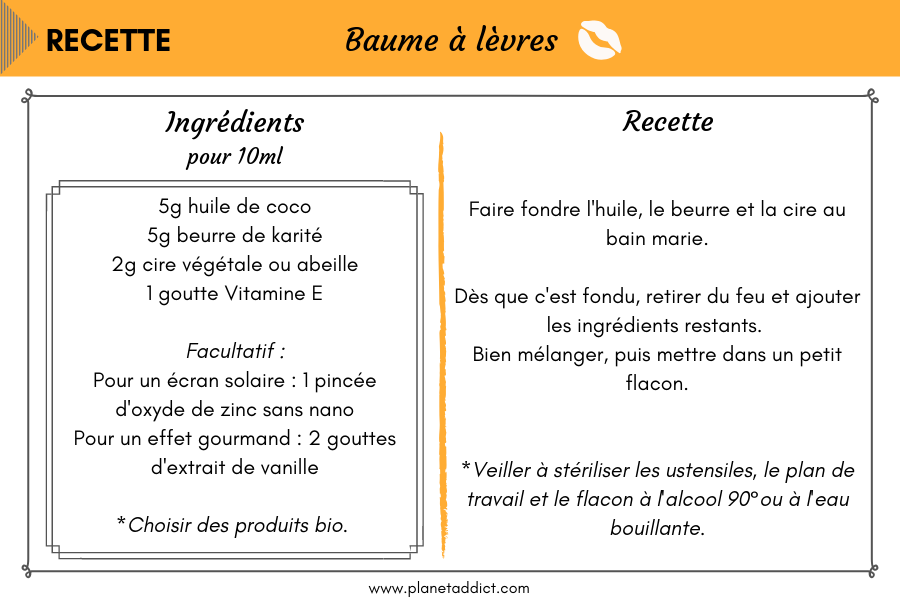 J’ai toujours été une adepte des soins pour les lèvres. Si comme moi vous avez les lèvres un peu sensibles et que vous voulez leur offrir une petite protection, il suffit d’ajouter une pincée d’oxyde de zinc à une recette toute simple de baume à lèvre.
