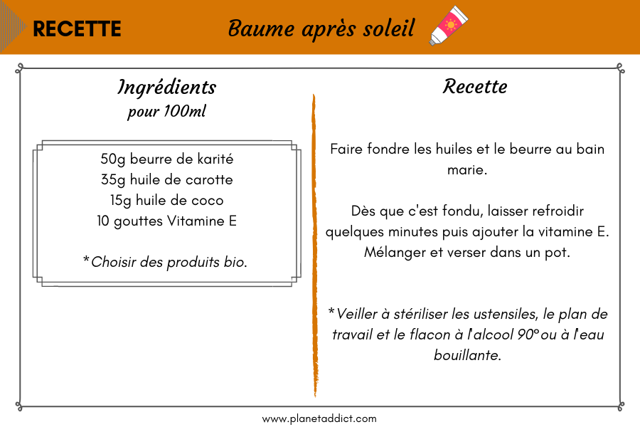 Ensuite, pour prolonger le bronzage tout en nourrissant la peau, voici un baume très simple à faire.