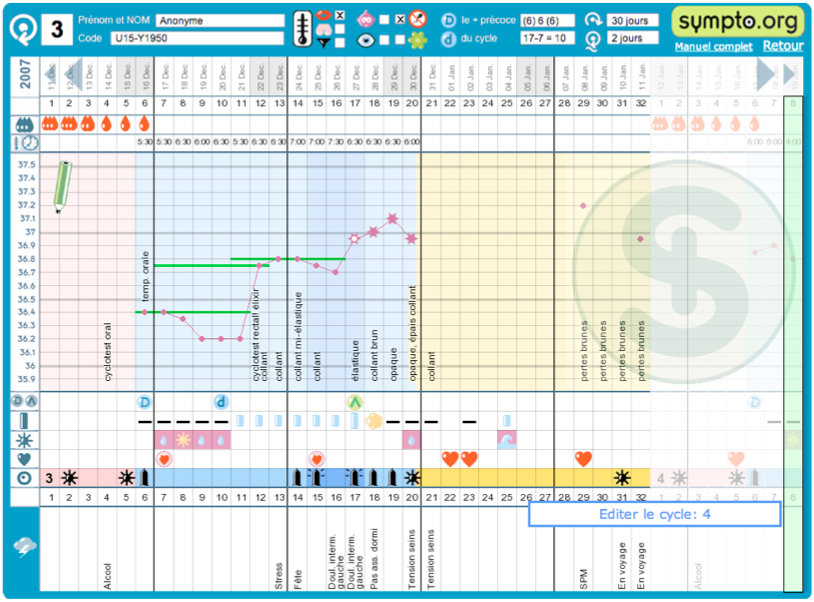 Exemple de cyclogramme, extrait du manuel la symptothermie complète