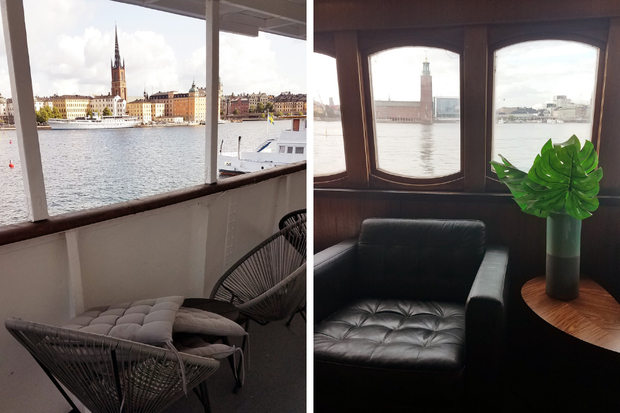 Le bateau est situé sur Södermalm, proche des transports en commun.Sur le quai d’autres bateaux-hôtels existent, celui qu’on a choisi semblait offrir un des meilleurs rapports qualité-prix.